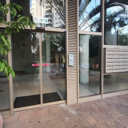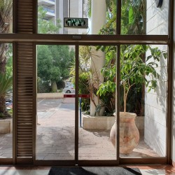 דלת זו נפתחת אוטומטית למבקשים לצאת ולמבקשים להיכנס נפתחת הדלת ע"י קודן / מקודד לחצנים או בפתיחה מהדירות בבתים ע"י האינטרקום..